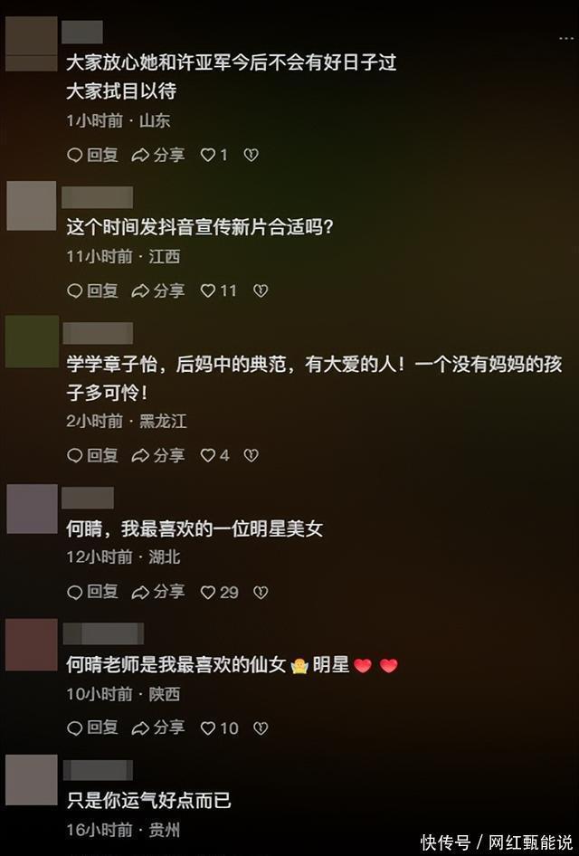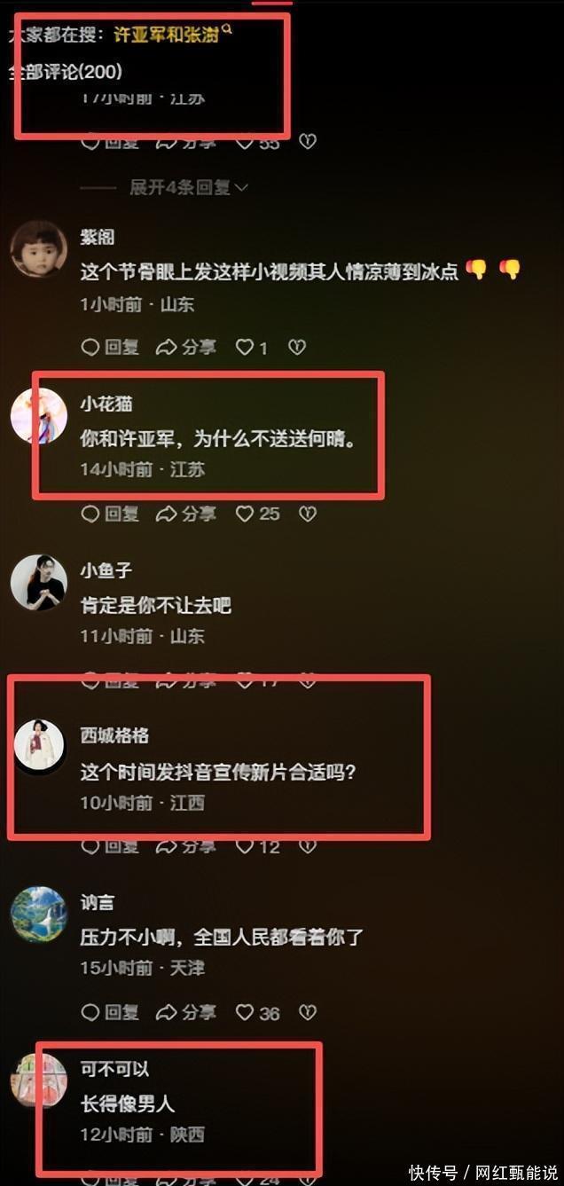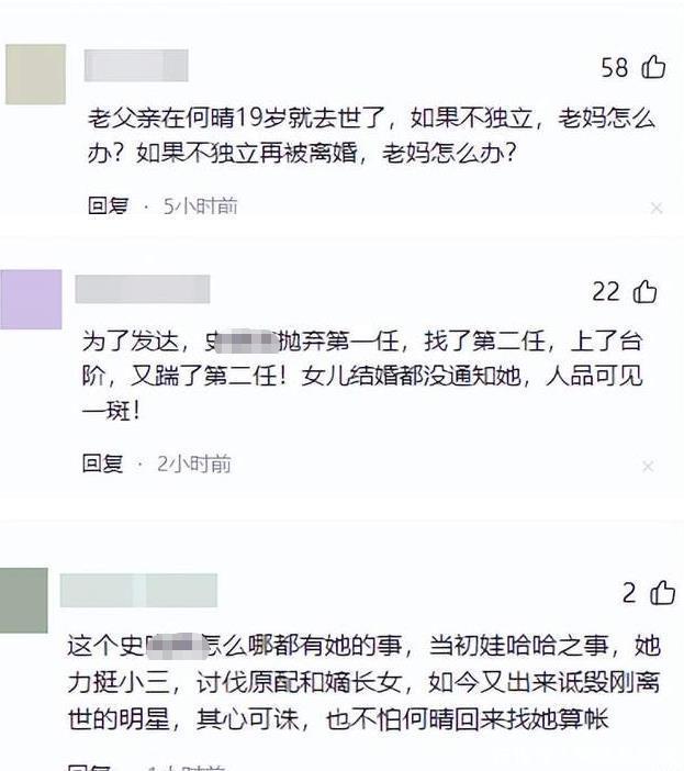 时间升级,张澍评论区沦陷 12月18日,一位公众人物史某的出现,为这件事情开始添砖加瓦。 她首先盛赞何晴年轻时“惊为天人”,惋惜其“红颜薄命”,随即抛出一个核心假设:如果当初何晴没和许亚军离婚,一切是否会不同?