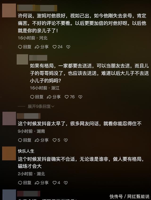 这本是娱乐圈离婚夫妻维持体面的典范,但在葬礼缺席事件后,一切变得微妙起来,而且这场舆论风暴中,最令人心疼的或许是许何。 24岁是说大不大,说小不小的年纪,失去母亲已是沉重打击,还要在葬礼上独当一面,同时承受着父亲缺席带来的二次伤害。